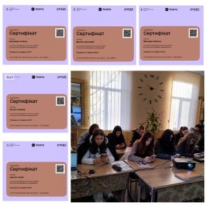 В рамках «Місяця цифрової грамотності» студенти групи В-11 під керівництвом викладача інформатики Гуцуляк Олени Олександрівни отримали базові навички з фактчекінгу та протидії дезінформації, переглянувши освітній серіал «Як захиститись від фейків і дезінформаціїї». Освітній серіал створено для платформи Дія.Освіта Міністерства цифрової трансформації в межах «Всеохопної інформаційно-просвітницької кампанії з протидії дезінформації», що впроваджується 1+1 media та Smart Angel у співпраці з експертними організаціями за фінансової підтримки Європейського Союзу.